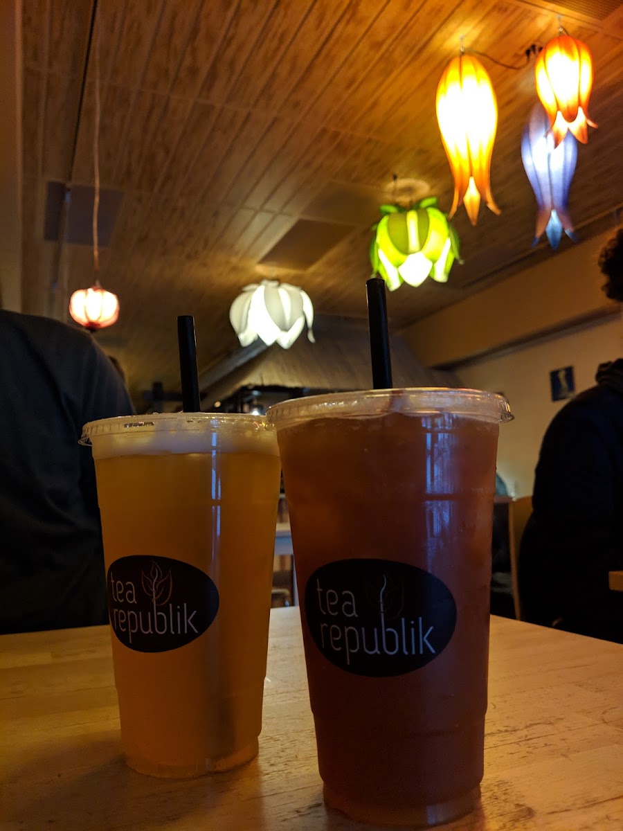 I can't believe I haven't been here earlier! Tea Republik is a long-standing traditional tea shop in University District that serves freshly brewed teas fit for every occasion. With an extensive tea menu that includes both caffeinated and decaffeinated teas, hot and iced, sweetened and unsweetened, there's sure to be something for everybody. It was hot outside today (a rarity in Seattle!), so I ordered an iced drink in a 20oz. I opted for the seasonal special rose tea that has a black tea base. It was floral with a full body, and paired well with the cream and sugar. You can adjust sugar levels as you prefer, or opt for no sugar. The cream is already non-dairy, but if you prefer, you can also get soy instead for an additional charge. Each drink came in a cute glass and a paper straw. We sat there for two hours and drank it slowly, and the straw never disintegrated. If you feel overwhelmed by the large menu, you can always ask the staff for recommendations. They are very friendly and helpful, knowledgeable in flavor profiles and pairings. It is also a superb studying spot for students. Quiet and ample tables and seating, as well as wifi and outlets to use. The restroom is clean and there is free water dispensers as well. We enjoyed our peaceful morning chat here.